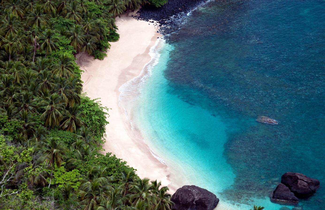 En tête de liste des plus belles îles secrètes au monde, Sao Tomé-et-Principe est aussi l’un des plus petits pays de la côte ouest africaine. Bordé par les vagues turquoise de l’Atlantique, on y découvre une multitude de plages immaculées, des forêts couleur émeraude et quelques hôtels de bon goût, les pieds dans l’eau. Cerise sur le gâteau? On y produit du chocolat de haut vol et de l’huile de noix coco éco-responsable à foison.